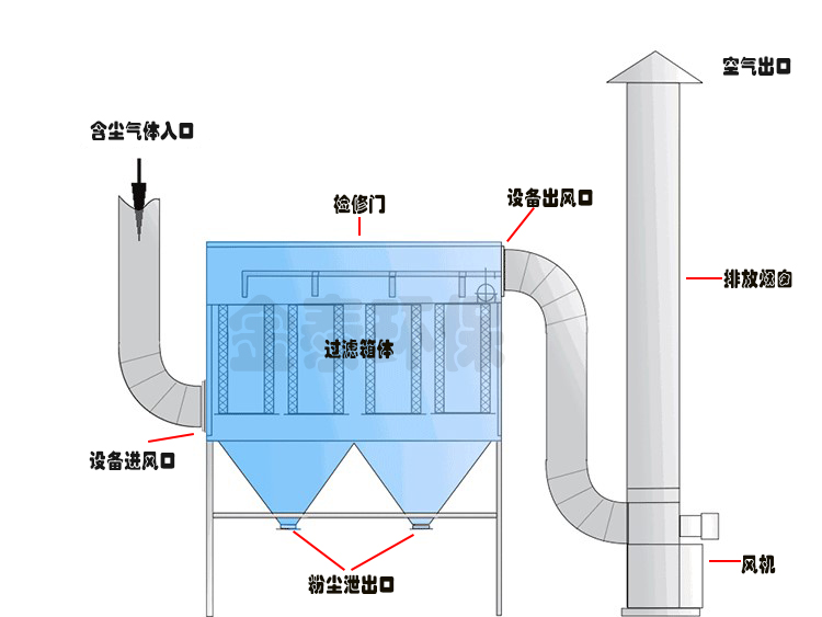 布袋收塵器設備的結構由以下部分組成: