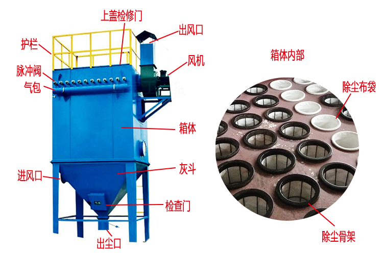 脈沖布袋除塵器的結(jié)構(gòu)由以下部分組成: